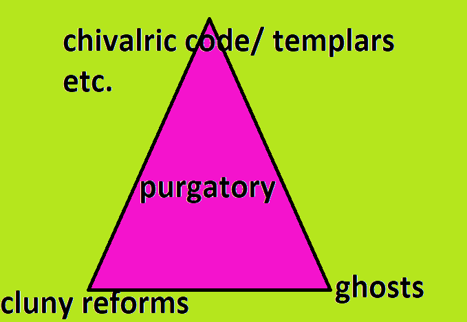 okay so, back to where we came in. i made an entirely spurious and “purposefully” bad diagram to show how the concept of purgatory was central to the church’s attempt to protect itself, consolidate power and control property at this time: